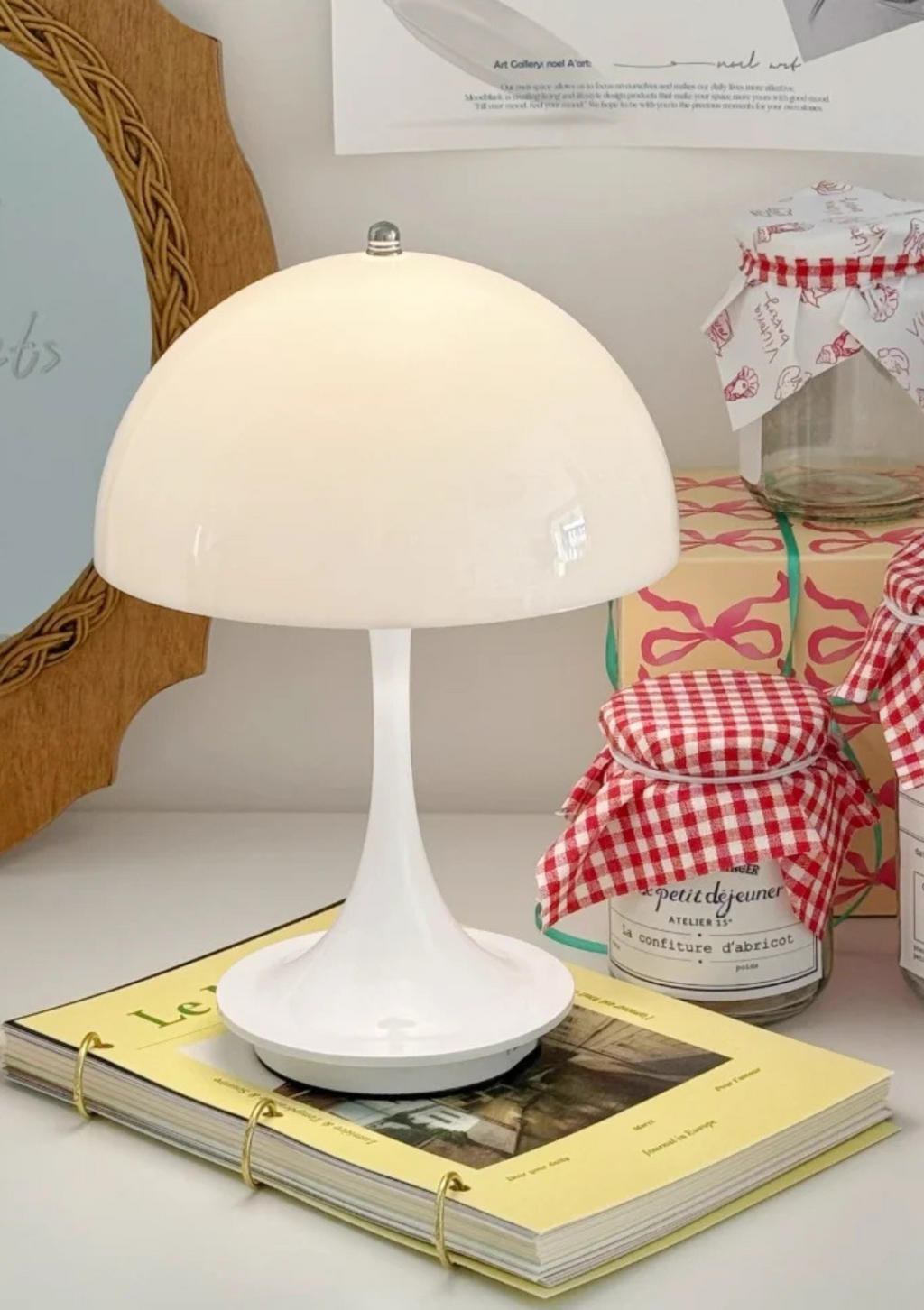Mais do que uma luminária, o candeeiro para mesa é um detalhe decorativo que valoriza o ambiente. Seu formato inspirado em cogumelo adiciona personalidade, enquanto a iluminação versátil se adapta a qualquer ocasião, tornando a peça indispensável para quem busca beleza e funcionalidade.