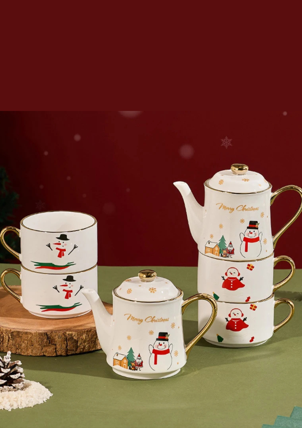 Conjunto de Chá Natalino em Cerâmica Sofisticação e Encanto à Sua Mesa