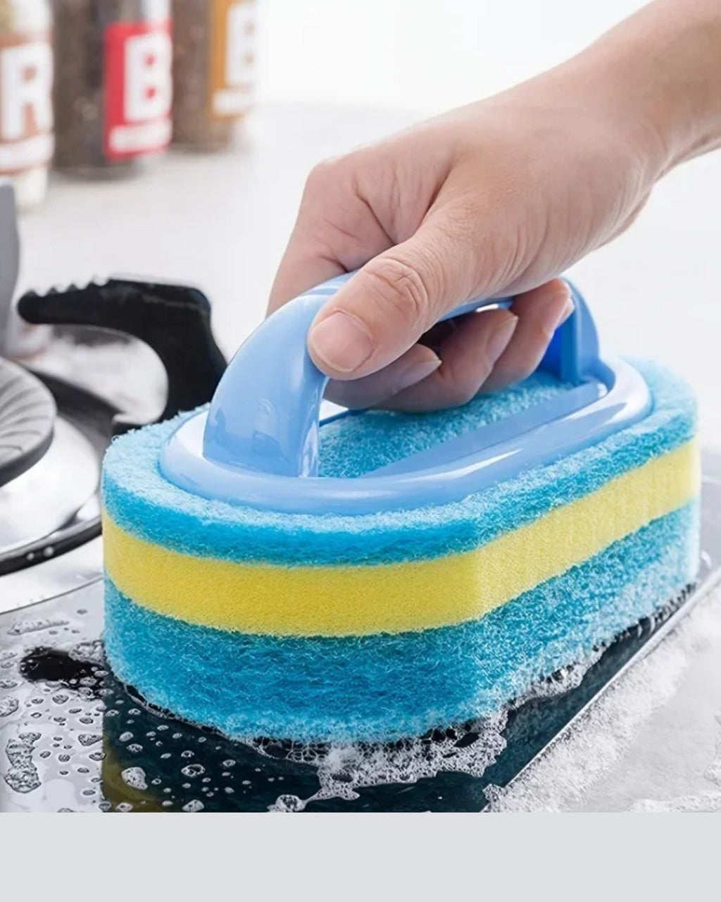 Escova de Limpeza com Alça e Cabeça de Esponja Para Cozinha e Banheiro