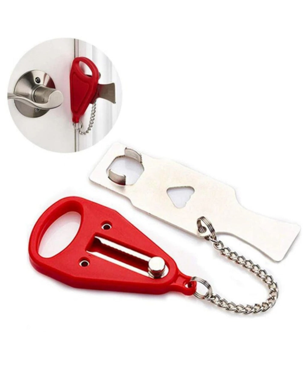 Aumente sua tranquilidade em qualquer lugar com esta trava de porta portátil. Leve e fácil de usar, ela impede a abertura da porta por fora, mesmo com chave, oferecendo mais segurança e privacidade. Ideal para hotéis, Airbnbs, apartamentos, dormitórios ou até em casa. Feita com aço inoxidável resistente e acabamento suave, é prática para levar na bolsa ou mochila. Uma solução inteligente para quem valoriza proteção onde estiver.