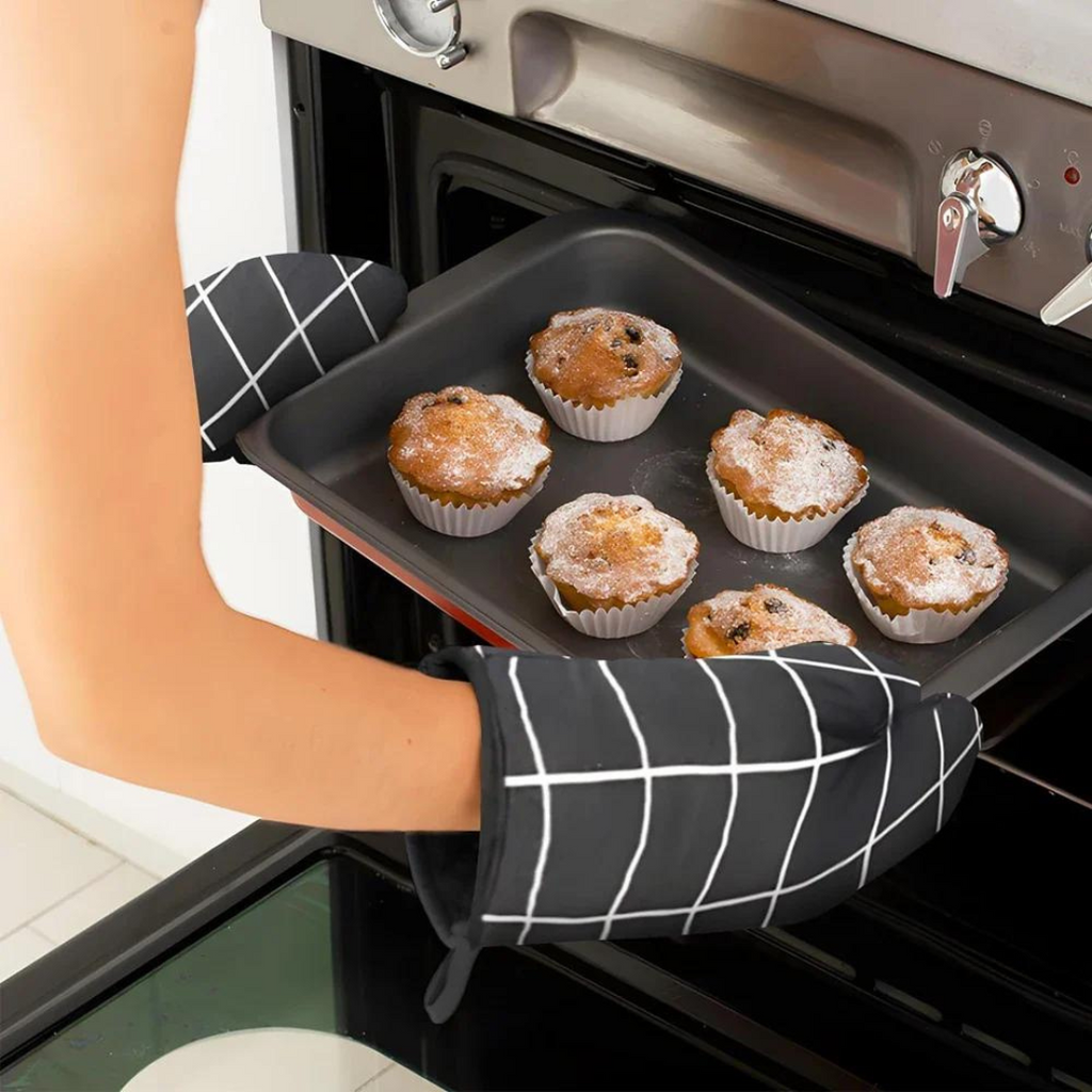 Com um design moderno e monocromático, elas não só são funcionais, mas também adicionam um toque de elegância à sua cozinha. As luvas térmicas mais longas proporcionam uma cobertura completa dos braços, ideal para utilizar o forno. Perfeitas para chefs domésticos e profissionais, essas luvas são indispensáveis para quem busca conforto, segurança e estilo na cozinha.