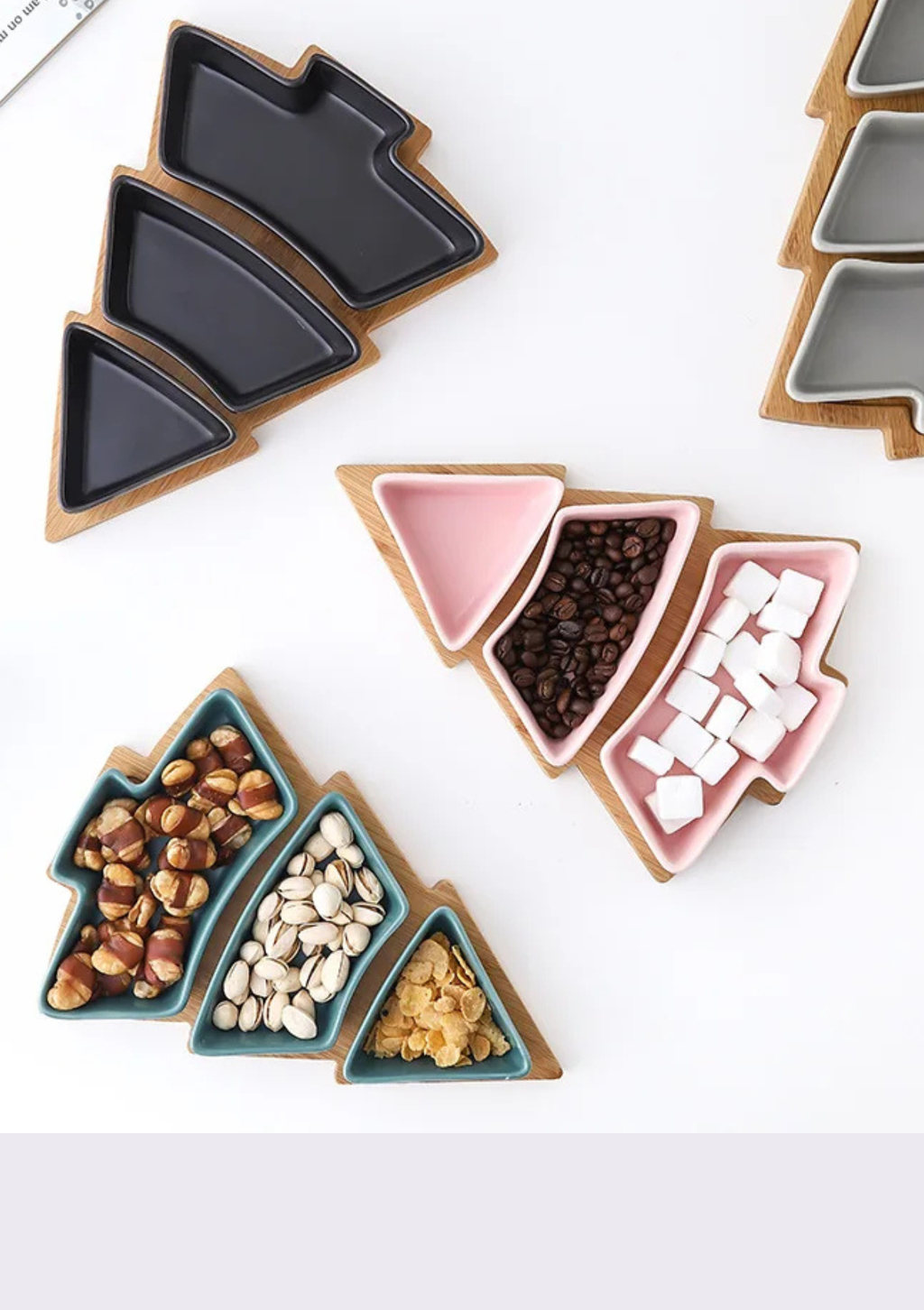 Prato de Sobremesa em Cerâmica Formato Árvore de Natal