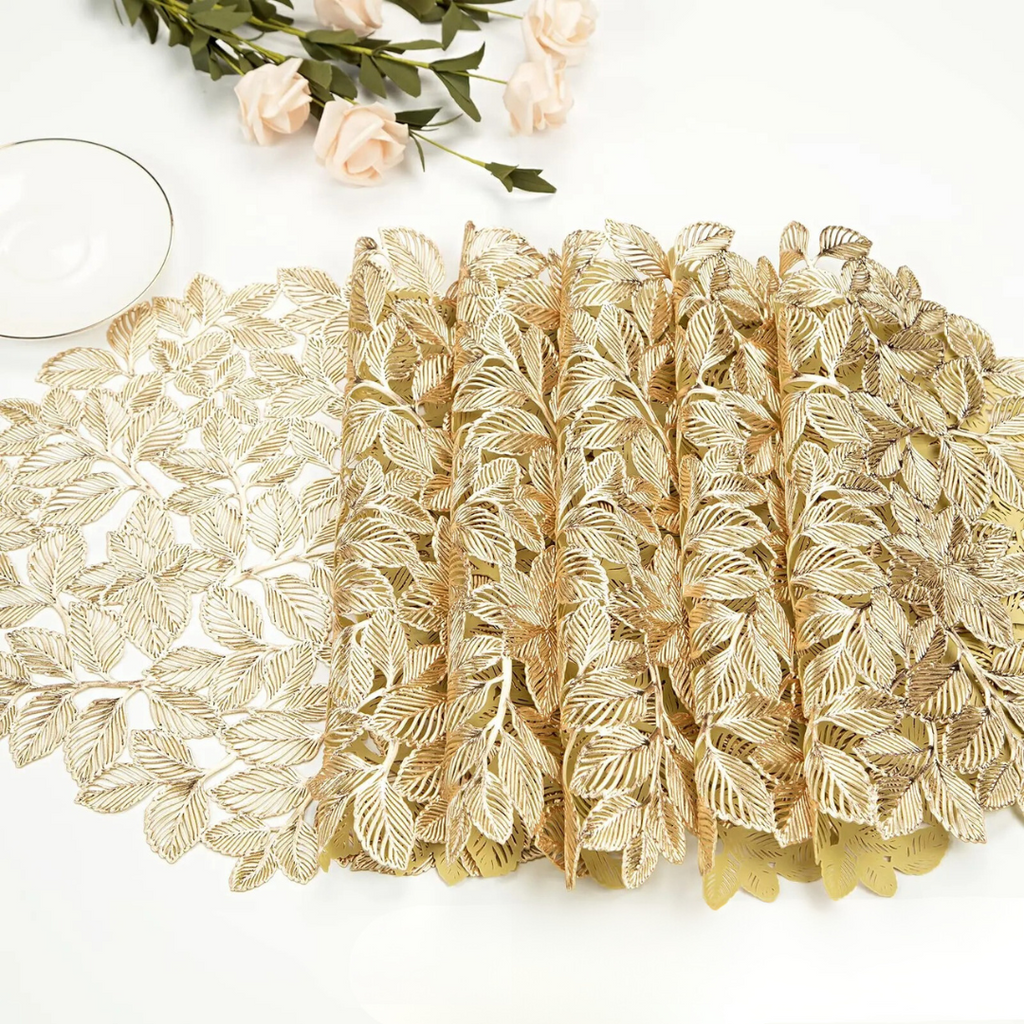 Adicione um toque de glamour à sua mesa com o conjunto de sousplat redondo folha de ouro. Com 6 peças elegantes feitas de vinil resistente e antiderrapante, esses jogos americanos são perfeitos para festas, recepções de casamento, jantares de aniversário e eventos especiais. Com um design de folhas vazadas e acabamento metálico dourado, eles protegem a superfície da mesa de arranhões e altas temperaturas, enquanto trazem sofisticação à sua decoração. Além disso, são fáceis de limpar, garantindo praticidade e durabilidade para o uso diário ou em ocasiões especiais.